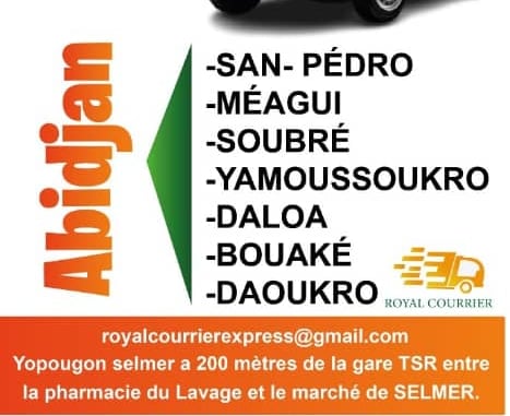 ROYAL COURRIER dessert plusieurs grandes villes de Côte d’Ivoire :